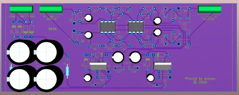 C1-C4capacitors. When the amp is already powered up, switching on the Phono X will cause a not-so-nice popping sound. I should probably add some soft - When powering off, the capacitors keep the amp working for quite a while. It might be nicer to really shut down the output when turning off.